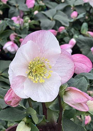 This winter bloomer boasts a high flower count and robust growth habit. The two-toned petals are white blushed with a dusky pink and make excellent...