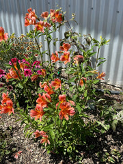 Vibrant, coral-pink blooms streaked with golden yellow and maroon markings, creating a striking contrast against lush green foliage. Blooming abundantly from late spring through fall, this compact Peruvian Lily makes a long lasting cut flower. A great choice for containers or a sunny spot in the border garden.